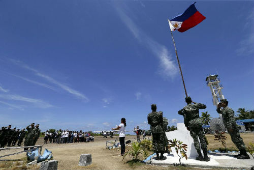 数日前,菲律宾数十名青年登上非法占据的南沙中业岛。(资料图)