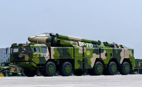 东风-21是中国80年代末研制成功的机动式中程弹道导弹,是解放军首款固体燃料式弹道导弹,编制在二炮部队下,在二炮发展史上具有里程碑意义。其最新改型通过加装多种弹头诱饵使反导系统难以拦截,而且打击精度接近巡航导弹。该导弹对美国旨在拦截掠海飞行巡航导弹的反导系统来说,飞行高度过高;对于旨在应对其他弹道导弹的反导系统来说又太低。而且即使能够拦截一到两枚,同时发射多枚该型导弹也能实现作战目标,因而成为解放军装备序列中先进程度最高的武器。