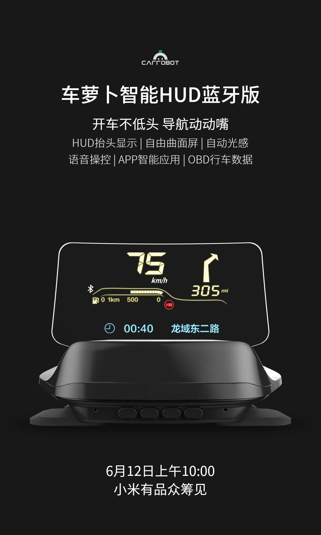 近期,车萝卜牵手小米有品推出新一代车萝卜智能HUD蓝牙版,新品将以众筹的形式于6月12日10点将在小米有品平台上正式上线,开启智能车载产品在高品质消费领域的新篇章。