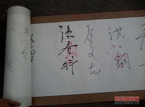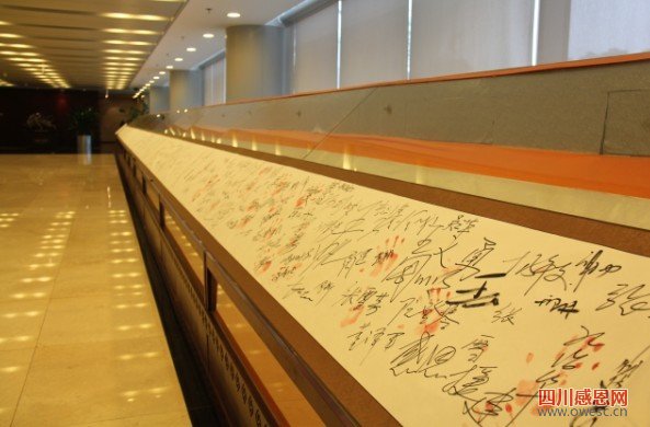 本月上旬,雅安市政协主席杨承一(原汉源县委书记),雅安市交通局局长张桥(原汉源县县长)相继在本网举办的“感恩奋进百米长卷活动”的“感恩长卷”上题款感恩。本网将“感恩奋进百米长卷”送往雅安受灾最严重的汉源县(国家级重灾县),该县的三基地一窗口陈列馆将永久收藏陈列“感恩奋进百米长卷”,以表对湖北人民的感恩情怀。