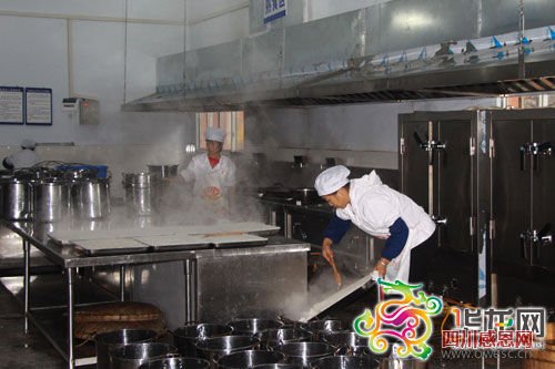 记者随工作人员来到清溪镇中心小学校“巴蜀爱心食堂”时,厨房里面正忙着为孩子们准备午餐。 记者 李辉 摄