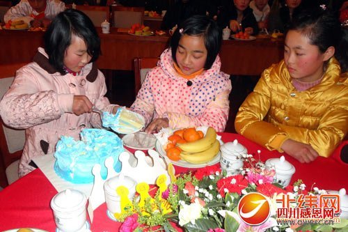 烛光中,小梦欢的眼角泛起了点点泪光。她大声地许下了她的生日愿望:“我希望所有的小朋友每一个生日都过得愉快。”其实,她和所有留守儿童一样,最希望的是自己的父母能够一直陪在他们的身边,伴随他们的成长。吹灭了蜡烛,小梦欢迫不及待地把她的生日蛋糕和小伙伴分享。