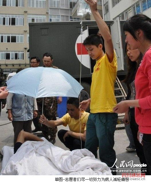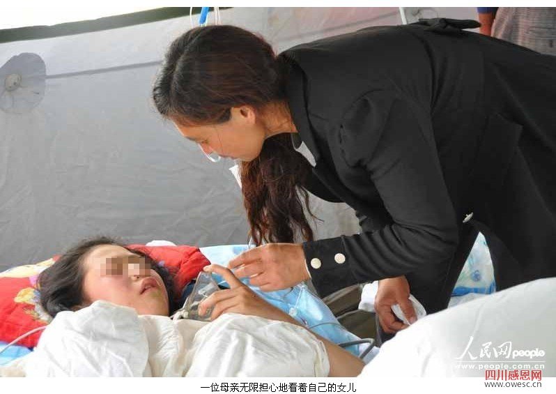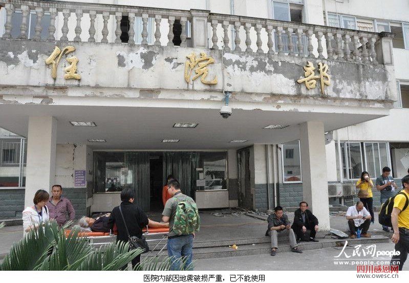 人民网雅安4月21日电(记者 刘茸 杨成)四川省雅安市芦山县发生7.0级地震后,人民网记者赶赴震区,了解灾情和伤员受助情形。这组图片为人民网记者在芦山县医院所摄。