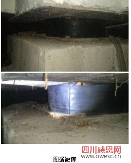 这栋大楼这次之所以如此“坚强”,是因为在地基和上部结构之间通过分析与设计采用83个直径为500mm和600mm的橡胶隔震支座。